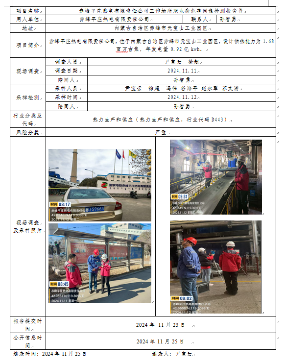 察右中旗中兴矿业有限责任公司职业病危害现状评价2024