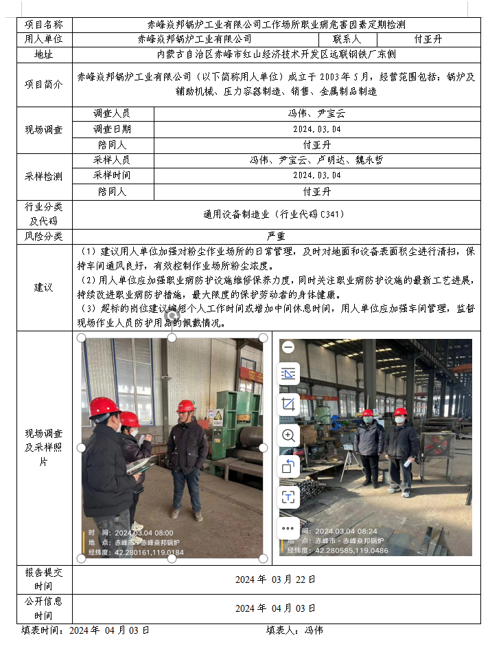 赤峰焱邦锅炉工业有限公司定期检测-2024