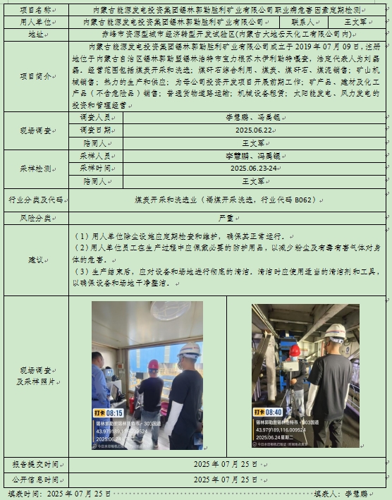 内蒙古能源发电投资集团锡林郭勒胜利矿业有限公司职业病危害因素定期检测2025