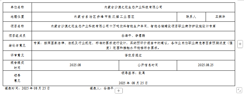 内蒙古沙漠之花生态产业科技有限公司十万吨饮料智能生产车间、智能仓储建设项目职业病防护设施设计专篇