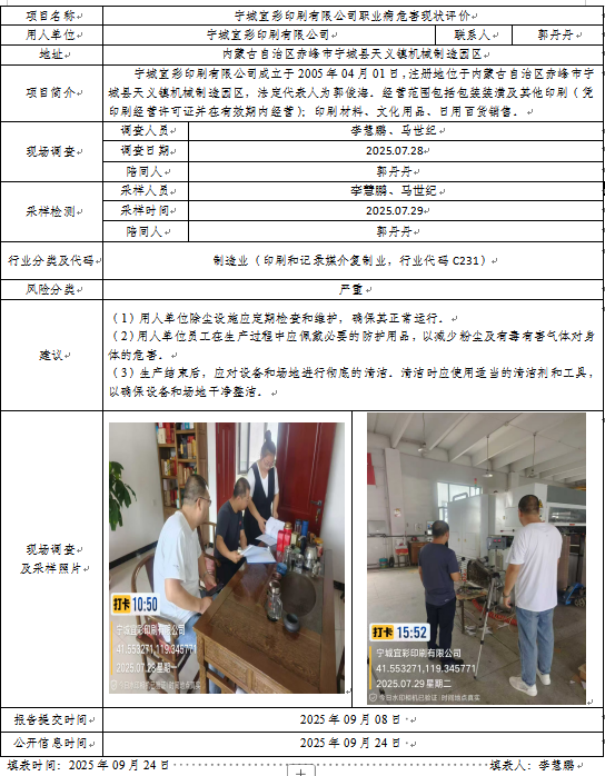 宁城宜彩印刷有限公司职业病危害现状评价-2025