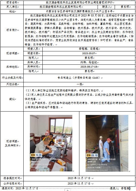 敖汉旗金穗旺禾农业发展有限公司现状评价报告2025