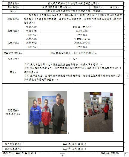 敖汉旗贝子府口琴加油站现状评价报告2025