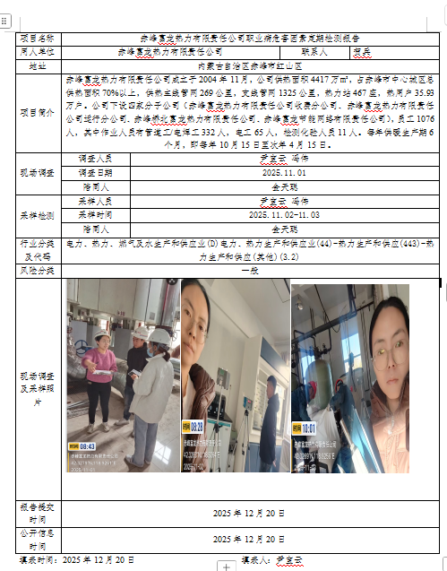 赤峰富龙热力有限责任公司职业病危害因素定期检测报告-2025