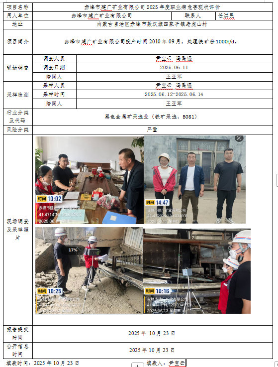 赤峰市建广矿业有限公司2025年度职业病危害现状评价