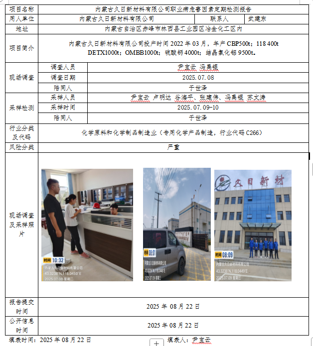 内蒙古久日新材料有限公司职业病危害因素定期检测报告-2025