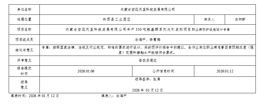 内蒙古宏远天呈科技发展有限公司年产350吨羟基酮系列光引发剂项目