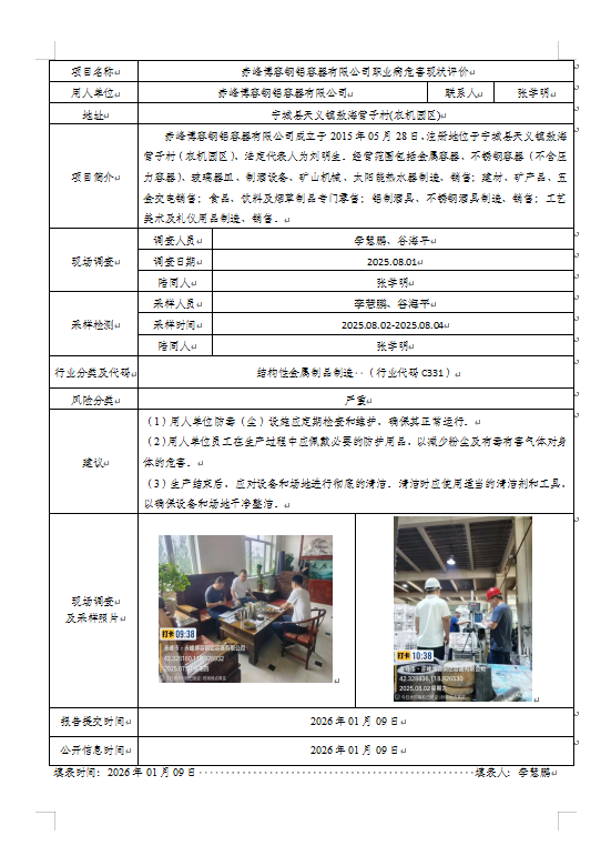 赤峰博容钢铝容器有限公司2025年度职业病危害现状评价报告书